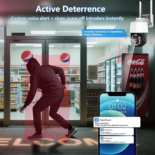 5.【Advanced AI-Powered Human Detection and Active Defense】 Benefit from advanced AI algorithms that provide precise human shape detection, filtering out false alarms caused by non-human movement. Upon detecting an intrusion into designated areas, the camera triggers real-time alerts and initiates active defense measures, including customizable sound and light alarms. You can remotely monitor the camera via mobile phone or PC client over WiFi, enabling you to view real-time footage from anywhere, at any time. Secure your property with accurate and responsive protection.