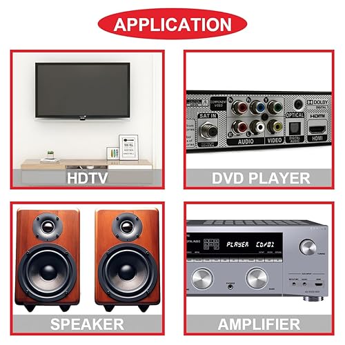 WIDE APPLICATION:RCA plug to speaker cable suitable for equipment with RCA plug and speaker plug. Connecting and extension cables for amplifiers, audio, speakers and other audio devices.