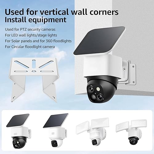Versatile Vertical Corner Mount : For mounting equipment in vertical corners for PTZ security cameras , LED wall/stage lights , solar panels , etc . Compatible with Eufy360 floodlights , ring flood cameras , etc