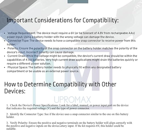 6V or 4.8V Output – Provides 6V output when using alkaline batteries and 4.8V when using rechargeable AA batteries, allowing flexibility depending on your power source preference.