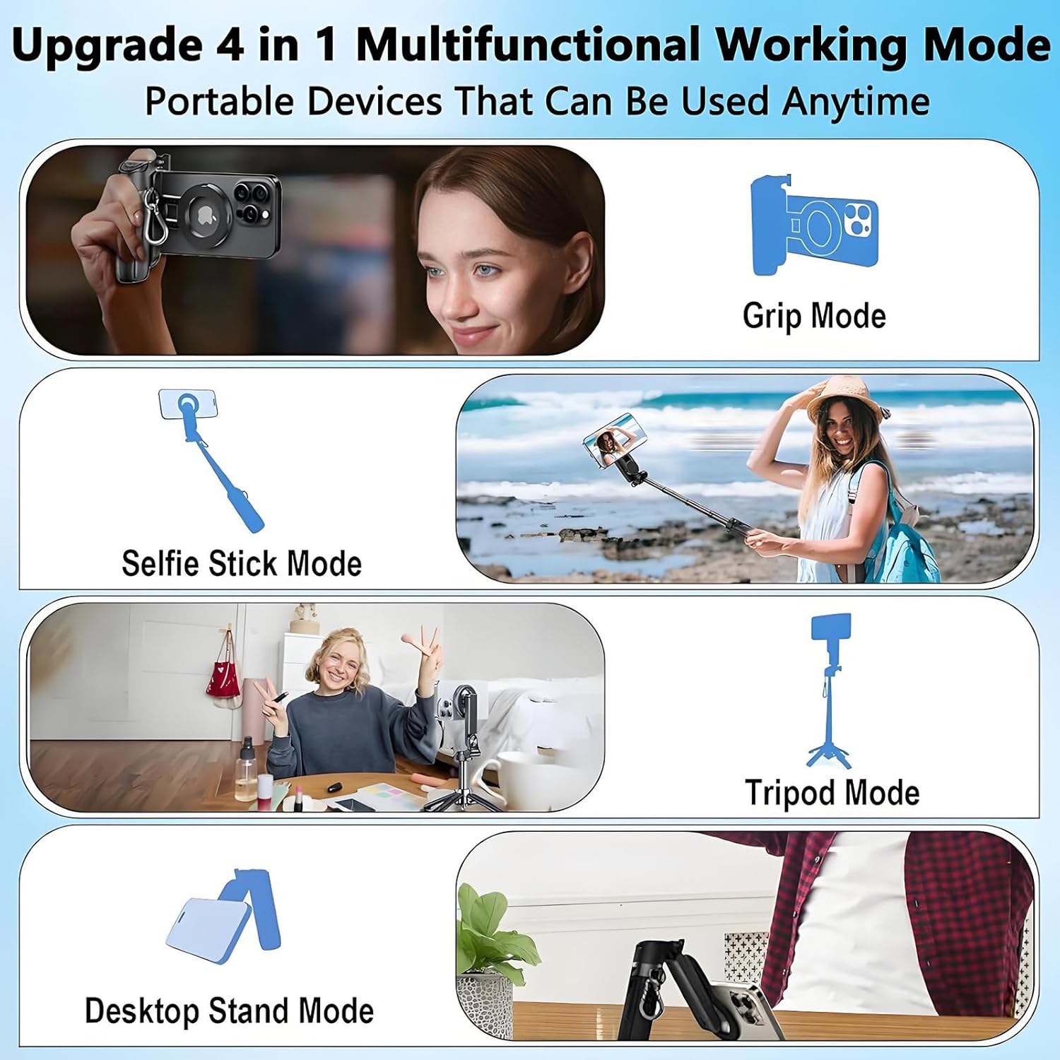 【Universal Compatibility】For iPhone 17 Pro Max 16 15 14 13 12 series phones or for Mag-Safe cases, this phone tripod can be directly magnetically connected. The equipped metal ring also makes it compatible with standard phone cases for non-magnetic phones, such as for Samsung Galaxy S25 Ultra S24 S23 S22 S21 S20 A16 A15 A14 A35 A55 A54 A53 and other smartphones. Whether you are taking selfies, vlogging, live streaming or group photos, this selfie stick tripod can provide flexible shooting height for any occasion.