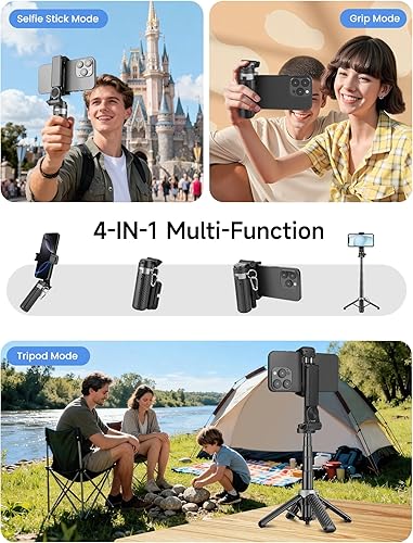 【Portable and Lightweight & Versatility】Selfie stick for iphone, stylish design for women, to document their lives on the go. Perfectly sized at just 11cm when folded – smaller than your phone! Weight just 113g. It's easily fits into your bag or pocket without adding extra bulk. Snap-Open Simplicity, Just pull to extend the sturdy aluminum pole and lock it securely in place – no complicated assembly. Retractable selfie stick beyond basic selfies, switch freely between 4 modes. Selfie Stick Tripod & Phone Tripod & Handheld Grip.