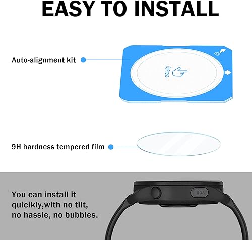 [Premium material] The garmin forerunner 165 screen protector is made of 9H tempered glass, the hardness is greatly enhanced. And the smooth surface make it easy to clean, especially to avoid the adhesion of oil stains and fingerprints