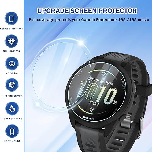 Comment on "4 Pack Compatible for Garmin Forerunner 165/165 Music Screen Protector Clear, Full Coverage 2.5D Edge Anti-Scratch 9H Tempered Glass with Sensitive Touch for Garmin Watch Protective Film(3 PCS clear)"