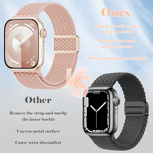 Comment on "4 Pack Magnetic Braided Solo Loop Compatible with Apple Watch Band 38mm 40mm 41mm 42mm 44mm 45mm 46mm 49mm Women Men, Stretchy Nylon Sport Elastic Strap for iWatch Series 11/10/9/8/SE/7/6/5/4/3/Ultra(Black/Sand Pink/Dark Cherry/Cactus,38/40/41/42mm(series 10/11))"