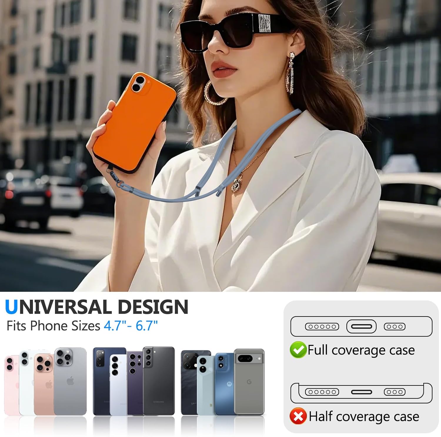 Soft, Comfortable & Durable: Crafted from 6mm premium polyester fiber, this phone lanyard is skin-friendly, non-irritating, and colorfast even after long-term use. Lightweight design (neck strap: 1.02 oz, wrist strap: 0.6 oz) prevents neck strain and makes it easy to wear all day.