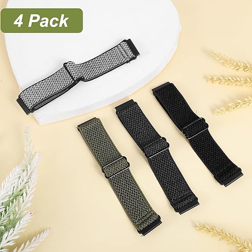 4 Pack Quick Release Watch Band Elastic Braided Nylon Strap 22mm Replacement Wristband Adjustable Stretchy Watch Straps Loop Sport Smartwatch Band for Men Women