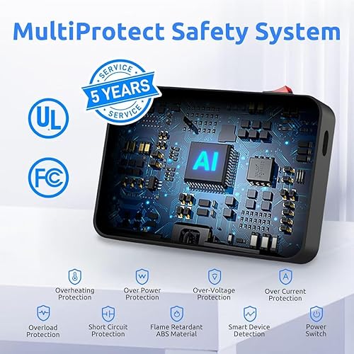 Smart IC Technology for Safety: Device charger stations built with flame-retardant ABS material; Includes overvoltage, overcurrent, overcharge, and short-circuit protection; FCC and UL certified; Convenient on/off switch for enhanced safety and energy efficiency