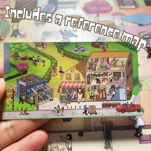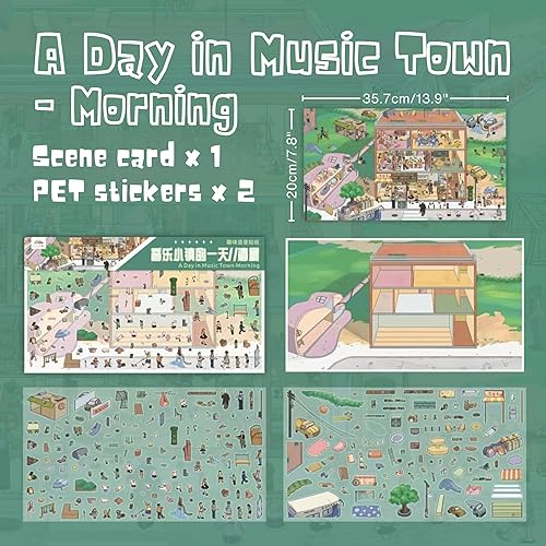 Introducing our durable and Super Big Size scene card sticker, designed for an immersive gaming experience. It includes 4 sets of background cards showcasing music town at morning, noon, afternoon, and night, each featuring over 5 unique scene stories. This allows for at least 20 small DIY scene experiences, encouraging creativity and enjoyable slow time.