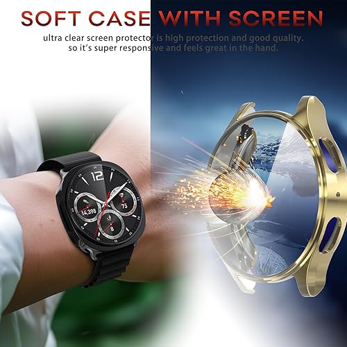 【Safe Material】- Made of top-grade soft TPU material which is safe and comfortable to wear even while go to sleep. HD soft screen protector + unique appearance color, so galaxy watch case cover safety and glamour coexist.