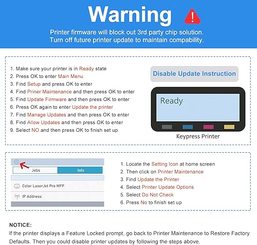 WARNING: Firmware will block out 3rd party chip solutions,Please Turn off future printer updates to maintain compatibility.