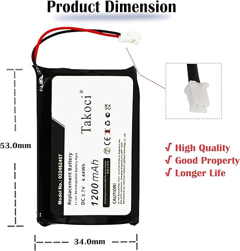 Specifications : Voltage :3.7V, Capacity :1200mAh/4.44Wh, Size :53.00 x 34.00 x 6.50mm, Net Weight : 25.0g / 0.88oz