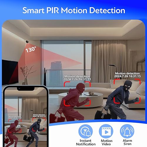 120° Wide-Angle Lens & PIR Motion Detection: The 120° wide-angle lens captures a broad field of view, while the PIR motion sensor accurately detects movement of people or animals, sending instant alerts to your phone via the app.