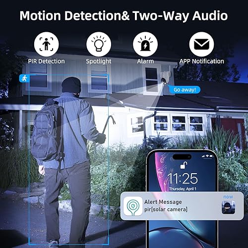 Advanced PIR Motion Detection & Two-Way Audio: Stay ahead of potential threats with advanced PIR motion detection, outdoor camera no wifi needed sends real-time alerts to your phone. Customize detection zones and sensitivity levels via the app for tailored security. Communicate directly through no internet needed security camera's built-in two-way audio, whether welcoming guests or deterring intruders.