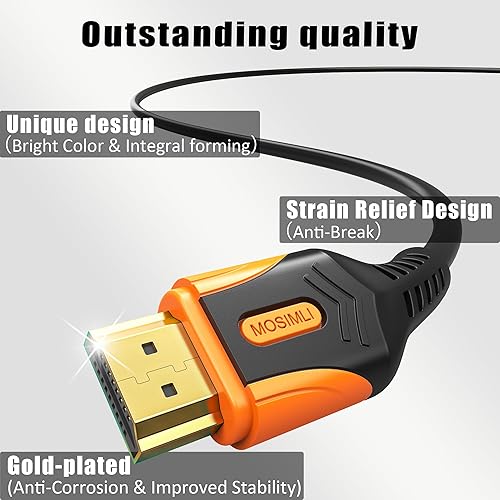 【Unique & Innovative Design】Eye-catching orange precision-molded housing for easy device identification. 24K gold-plated interfaces ensure pristine signal transmission. PVC jacket survives 15,000+ bend tests for tangle-free installations.Engineered to withstand harsh environments with uncompromising performance