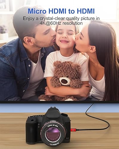 【4K UHD Video/Picture】Experience crystal-clear 4K Ultra HD resolution by casting media from the camera to the monitor. HDMI Micro to HDMI 2.0 Cable supports 4K@60Hz, 2K@165HZ Full HD resolution, Audio Return Channel (ARC), HDMI Ethernet Channel (HEC), 48-bit color depth, 32-channel audio, Dolby True HD 7.1 audio, and 3D video