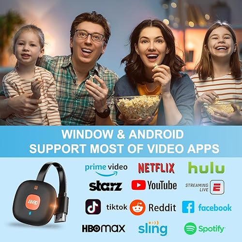 【BIG-SCREEN CASTING FROM ANDROID & WINDOWS】Our wireless HDMI adapter lets you cast Netfix, Prime Video, Sky Go, HBO Max, YouTube, and more—instantly from your Windows or Android device. Just plug and cast, you can enjoy smooth, high-definition series, movies, live sports, and shows on the big screen