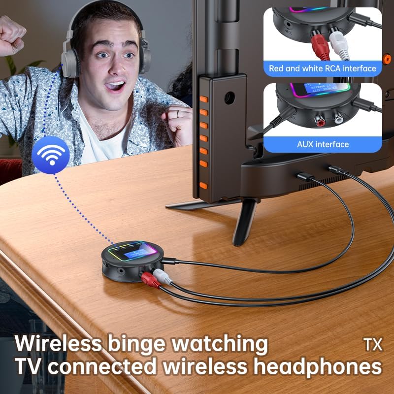 2-In-1 Bluetooth Transmitter Receiver: In transmitter mode TX, the Bluetooth adapter is plugged into an audio source such as a TV PC MP3 MP4 player and transmits audio to Bluetooth headphones speakers. In receiver mode RX, Bluetooth audio adapter can receive audio from a phone tablet and play music on a wired speaker/stereo.