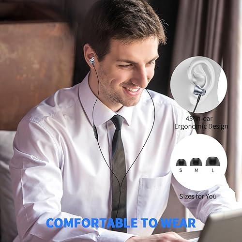 3 Size In-Ear Earbuds : Come with 3 sizes soft silicone eartips (L/M/S), you can choose your size for comfortable fit. Ergonomic semi in-ear earbuds design, no earpress feeling ,no pain in ears after long time wear.45 degrees into the ear, not easy to fall