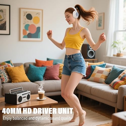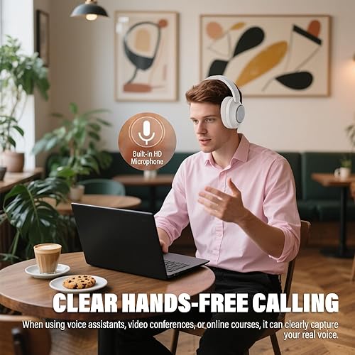 40MM DRIVER & HD MICROPHONES - This wireless headphones features a 40mm dynamic sound unit, delivering HIFI-grade high-resolution sound. Whether you're listening to music, watching movies, or playing games, it provides an immersive auditory experience. The built-in high-definition microphone can clearly capture your real voice when using voice assistant, video conference, or online class