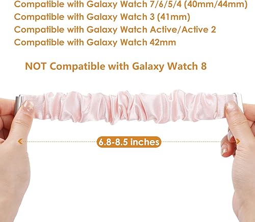 5 Packs 20mm Bands Scrunchie Band Compatible with Samsung Galaxy Watch 7 6 5 4 (40mm/44mm)/Galaxy Watch 3 (41mm)/Active/Active 2/Galaxy Watch 42mm for Women, Black/Pink/Green/Grey/White Lace