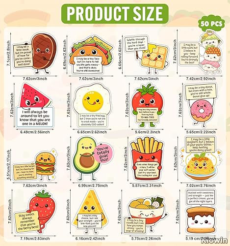 Emotional Support Food Sticker Pack – Our cute food sticker set includes 50 different stickers with unique designs and inspirational messages, no duplicates. From pizza and donuts to lovely fruits, they bring joy and motivation every day.