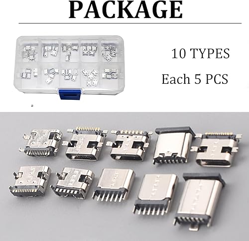 Comprehensive Set: Includes 50 PCS type C USB 3.1 female port, 10 distinct types, each with 5 pieces. Perfect for device repairs, replacements, and DIY electronics projects.