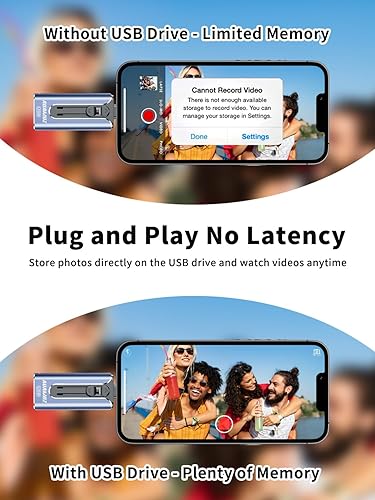 【Watch Movies, Photos and Play Music Directly From Phone Flash Drive】Store your favorite videos, audios and music on your iPhone's Photo Stick, then seamlessly plug and play on your iPhone or iPad anytime, anywhere. No more need for Internet or WiFi. This iPhone storage device plays videos in many different formats.Pictures stored on the Phone storage device also support different formats. Great way to store all your pictures and videos on an phone external storage device.