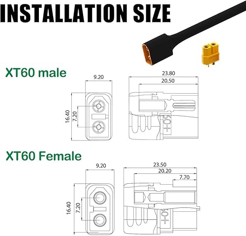 DC Connector by default is sent : XT60 Male (Gift: XT60 Female) Connector