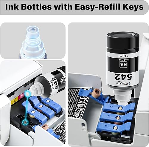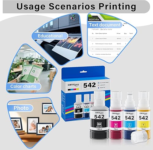 30 Seconds Refill Quickly: The 542 pigment ink ultra-high capacity bottle come with an auto-stop design &30 Seconds refill quickly, ensuring no spills, easy filling, and a stress-free experience. Effortlessly replenish your printers, matching the precision of the OEM.