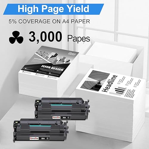High Page Yield: Up to 3,000 pages for 58A CF258A black toner (Letter A4, at 5% coverage)
