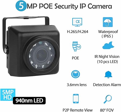5MP IP65 Waterproof POE IP Mini Camera,940nm Invisible LED Infrared POE Camera Night Vision,3.6mm Lens Mini Indoor/Outdoor Security Cam Motion Detection,PC/Phone App (I704-3-P-HSV6)(3.6mm Lens Black I704-3-P-HSV6)