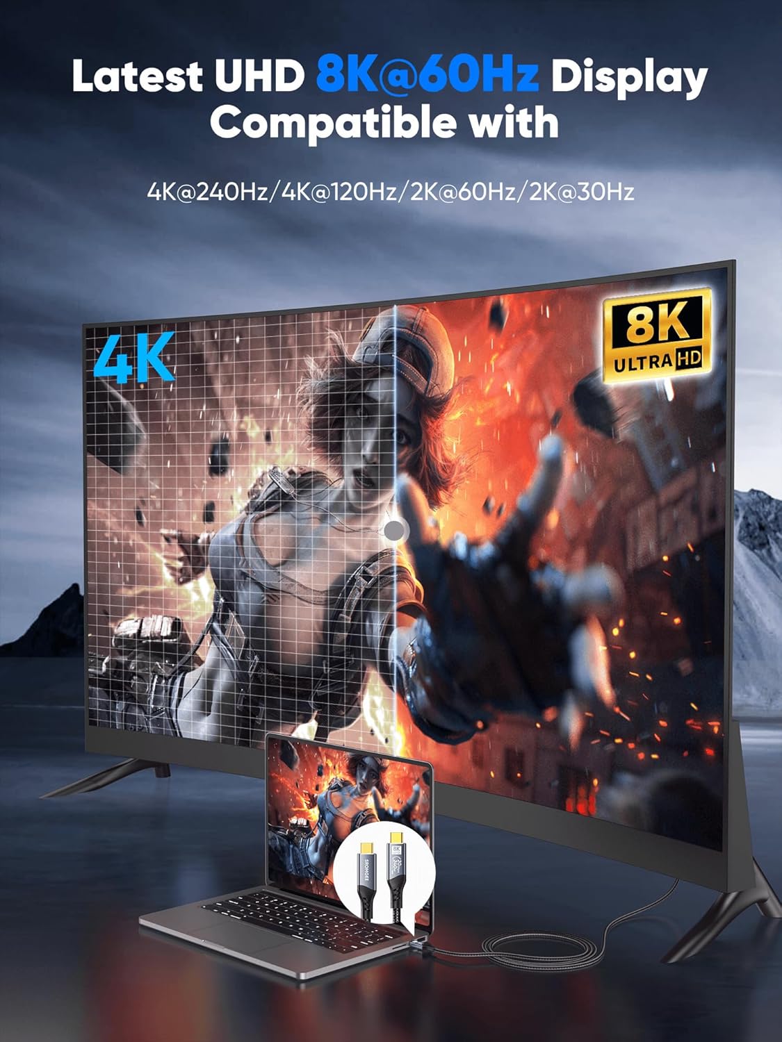 8K@60Hz Video Output Suitable for Portable Displays: This USB C video cable is suitable for most portable displays with USB C interfaces and supports output 8K@60Hz, 4K@240Hz /120Hz, 2K@240Hz /144Hz/120Hz and Full HD 1080P, compatible AOC, PHILIPS, Dell, Sceptre, acer, Virzen, Samsung, LG, MSI, ASUS, KOORUI, Dragolftie, Anyuse, SANSUI, MNN, ViewSonic, KYY, Alienware, INNOCN, HP, CRUA, ArcticPro Waiting for brands(Note: The video feature is only applicable to devices with USB-C ports that support DP Alt mode)