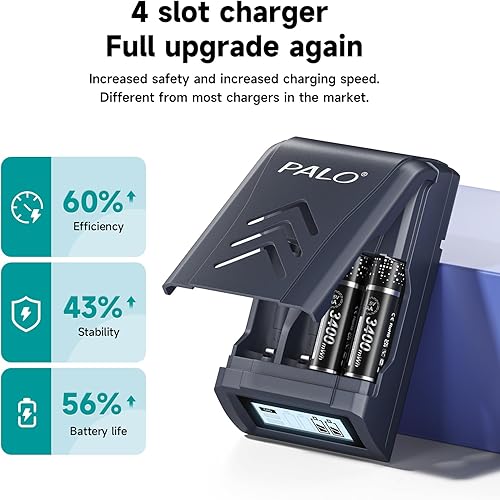This 4 bay battery charger can charge 1.2V AA AAA NiMH rechargeable battery or 1.5V AA AAA lithium rechargeable battery. With LCD Display, easy to get the charging state of each battery.