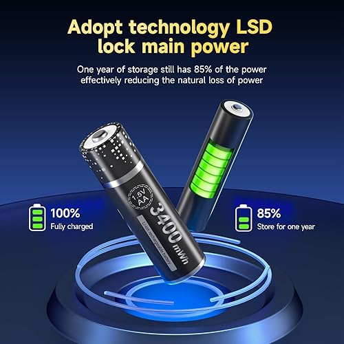 Advanced AA lithium-ion battery technology,1 pack 3400mWh AA rechargeable lithium battery can be recharged up to 1500 times,which is equivalent to thousands of dry batteries.Low-self-discharge,Long-term using will save you a lot of money on disposable battery.Not only economic,but also environmentally friendly.