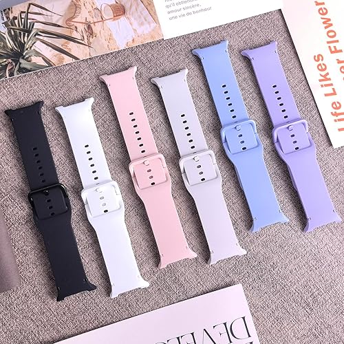 6 Pack Sport Bands Compatible for Samsung Galaxy Watch 8 Band 40mm 44mm/Galaxy Watch 8 Classic 46mm, No Gap Soft Silicone Strap for Men Women(A1-Black/Off-White/Pink/Purple/Starlight/Light Blue)