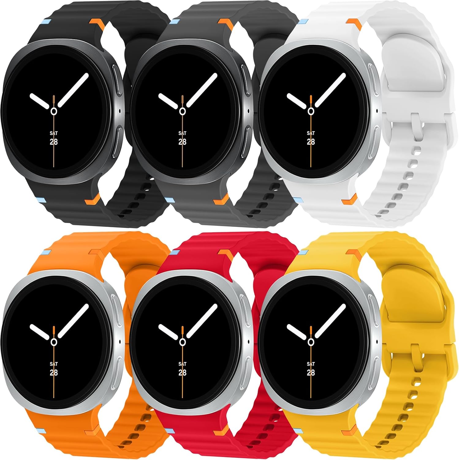 【Perfect Gift and Service】6 Pack different color silicone watch band for men and women compatible with samsung galaxy watch 8/galaxy watch 8 classic. It's a great affordable option for your watch accessories. Also a perfect gift for friends, lovers or family, Mother's Day, Father's Day, Thanksgiving, Christmas, New Year, Valentine's Day, birthday, Anniversary etc. Any problem about our watch bands, please contact us at the first time, we'll respond within 24 hours with a satisfied solution