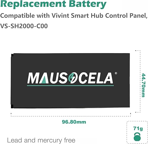 COMPATIBLE MODEL: Compatible with Vivint Smart Hub Control Panel VS-SH2000-C00. The battery has been newly upgraded and improved so that there will be no problems with the device not being recognized or the battery not working