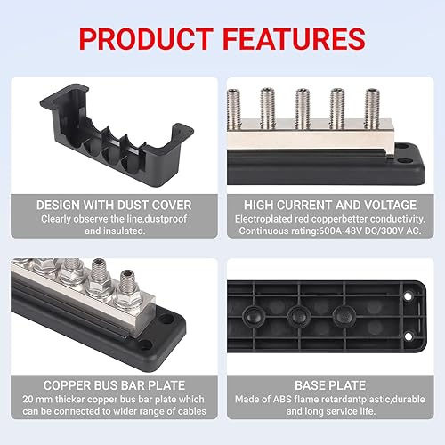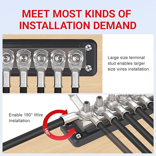 Unique Design: The terminal of this marine bus bar is 3/8" (M10) terminal stud design,optimized performance and more stable use,with up to 6 connection points