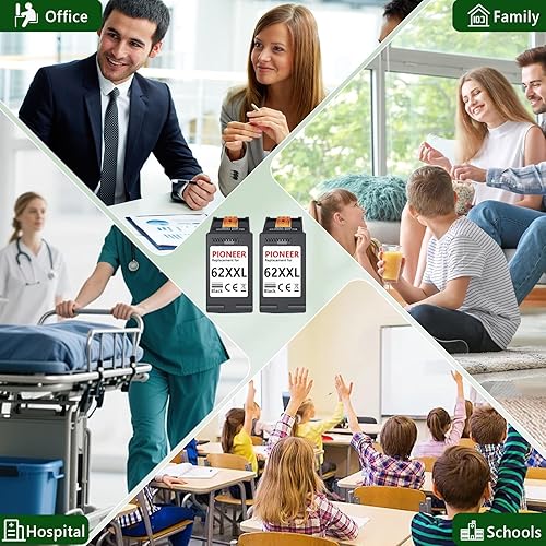 Package included: PFKink 62XXL for 62XL 62XL Ink Cartridges replacement Combo Pack (2* 62XXL Black).