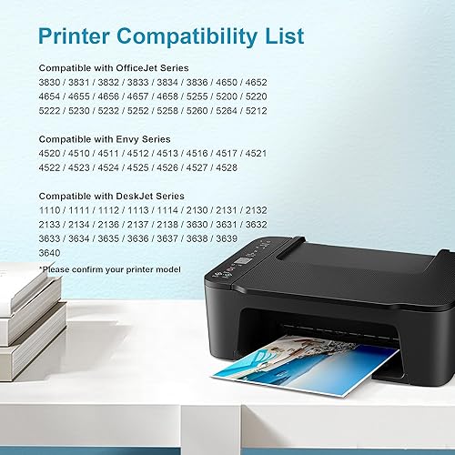 Compatible for HP OfficeJet 3830, 3831, 3832, 3833, 3834, 3836, 4650, 4652, 4654, 4655, 4656, 4657, 4658, 5255, 5200, 5220, 5222, 5230, 5232, 5252, 5258, 5260, 5264, 5212