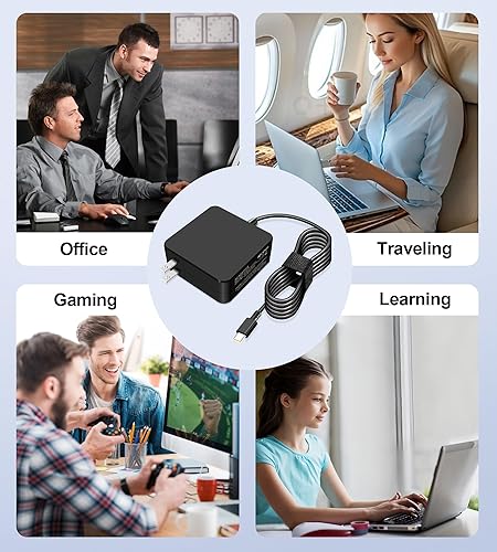 65W USB C Adapter Compatible with Mac Book pro 13 inch 2016, Mac Book Air 2018, Dell Latitude, Lenovo ThinkPad, ASUS Chromebook, HP Elitebook Spectre, Samsung Chrome book Pro, Samsung Galaxy, Acer Spin 7, iPad Pro 2018, and other devices with USB-C ports