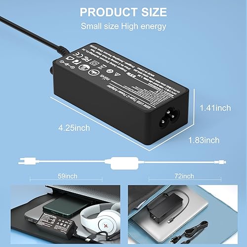 Compatible with: 2025 New 65W USB-C Laptop Charger Compatible with HP EliteBook x360 735 G5, 745 G5, 755 G5, 830 G5, 840 G5, 850 G5, 1020 G2, 1030 G2, 1030 G3, 1040 G4, Compatible with HP EliteBook Folio G1/Compatible with HP EliteBook Ultra G1i 14/X G1i 14/X Flip G1i 14/Ultra 14/ Ultra G1q8 14/X G1i 14, Compatible with HP Elite x2 1012 G1 G2, 1013 G3, Compatible with HP ZBook x2 G4, Compatible with HP X2 210 G2, Compatible with HP ProBook 640 G4 G5, Compatible with HP Pro x2 612 G2/Compatible with HP Pro Tablet 608 G1 Fast Charging AC Adapter Power Cord