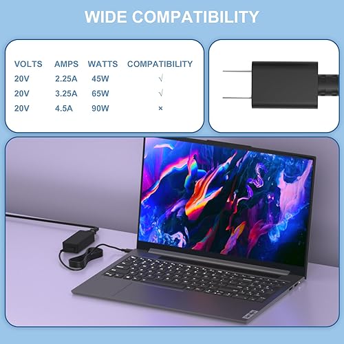65W USB-C Laptop Charger :This product features advanced smart charging technology, with input support for global standard voltages (100-240V), ensuring worry-free travel. The output provides multi-level intelligent adjustment (5V/3A, 9V/3A, 15V/3A, 20V/3.25A), with a maximum power output of 65W. It is also intelligently compatible with 45W devices, automatically matching the power required by the device to ensure safe and efficient charging