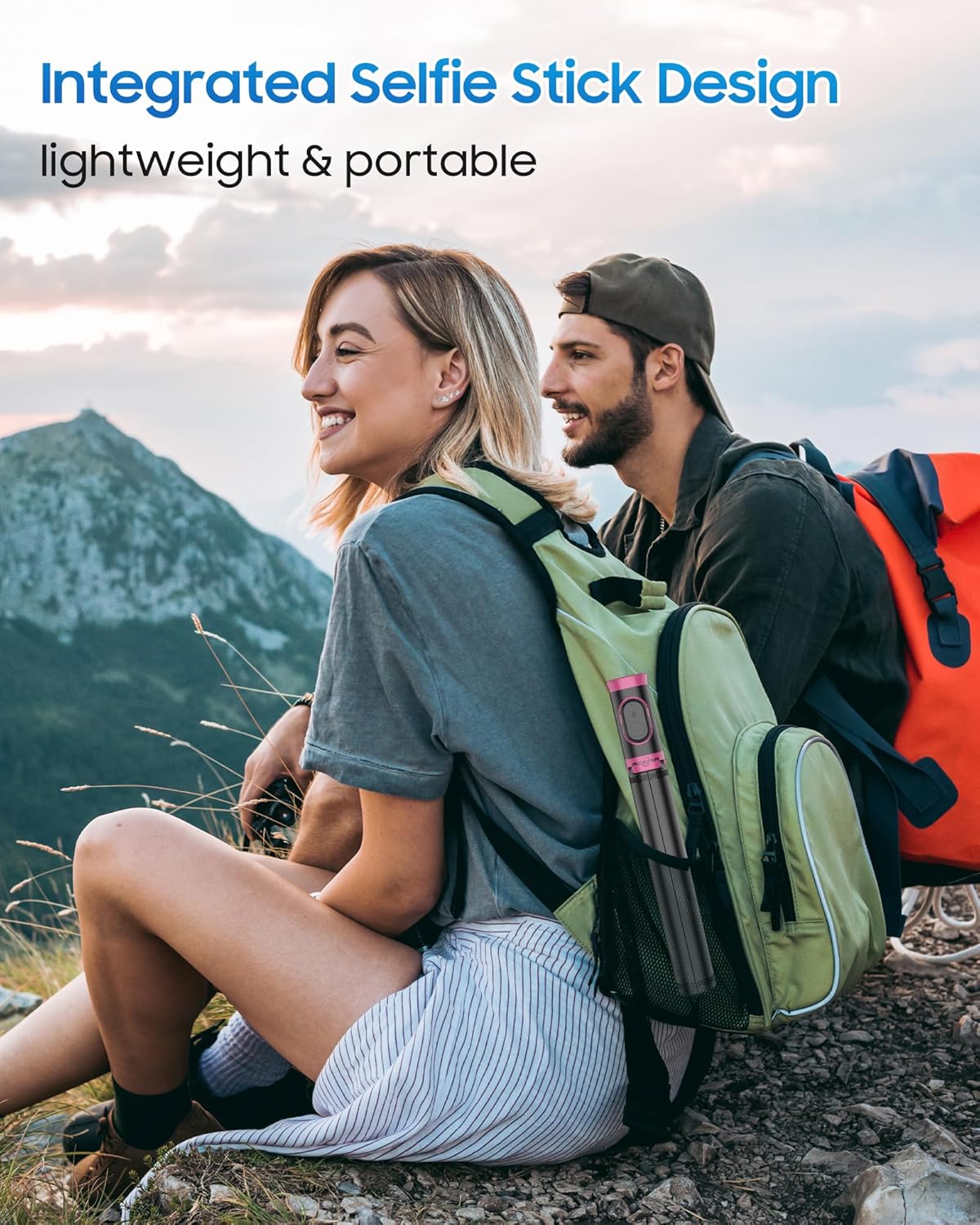 All-in-one Phone Tripod: Combines a tripod, selfie stick, and cell phone stand in one sleek design. Perfect for content creators, travelers, and live streaming. Folded to 12.8 inches, it's portable and can easily fit into a backpack