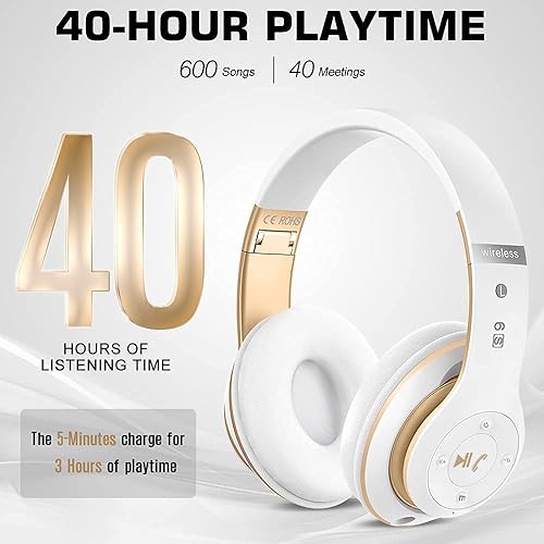 6S Bluetooth Headphones Over-Ear, Hi-Fi Stereo Foldable Wireless Stereo Headsets Earbuds with Built-in Mic, Volume Control, FM for iPhone/Samsung/iPad/PC (Blue)(white gold)