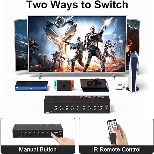 【Plug and Play】8 in 1 out AV/HDMI to HDMI converter no need any drivers, just plug to play. Simply plug in your devices and start enjoying your favorite content on the big screen.
