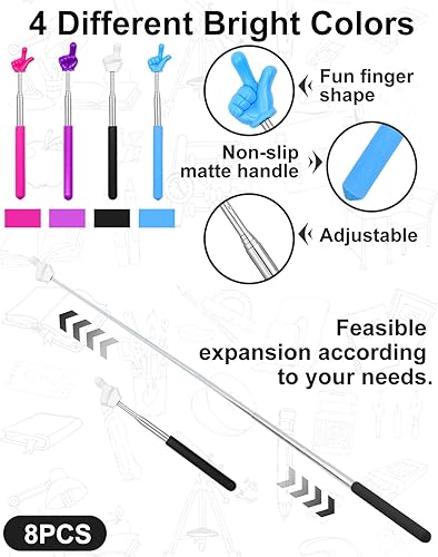 【8 PCS Colorful Finger Pointer Sticks】You will receive 8 pointer finger sticks in 4 vibrant colors (pink, purple, black, blue). These bright and fun finger pointers are ideal as pointers for classroom, easily drawing students'attention to make lessons more engaging.