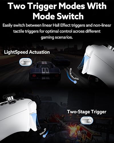 Trigger Mode Switch – Instantly toggle between linear Hall Effect triggers and tactile triggers to match your gameplay style and improve control across various game genres.