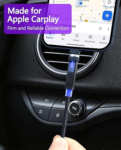 MFi-Certified Fast Charging & Data Sync: The 360° lightning cable features Apple MFi certification for safe 2.4A fast charging and 480Mbps data transfer. This swivel iPhone cable supports Apple CarPlay for seamless in-car entertainment system connection while driving.